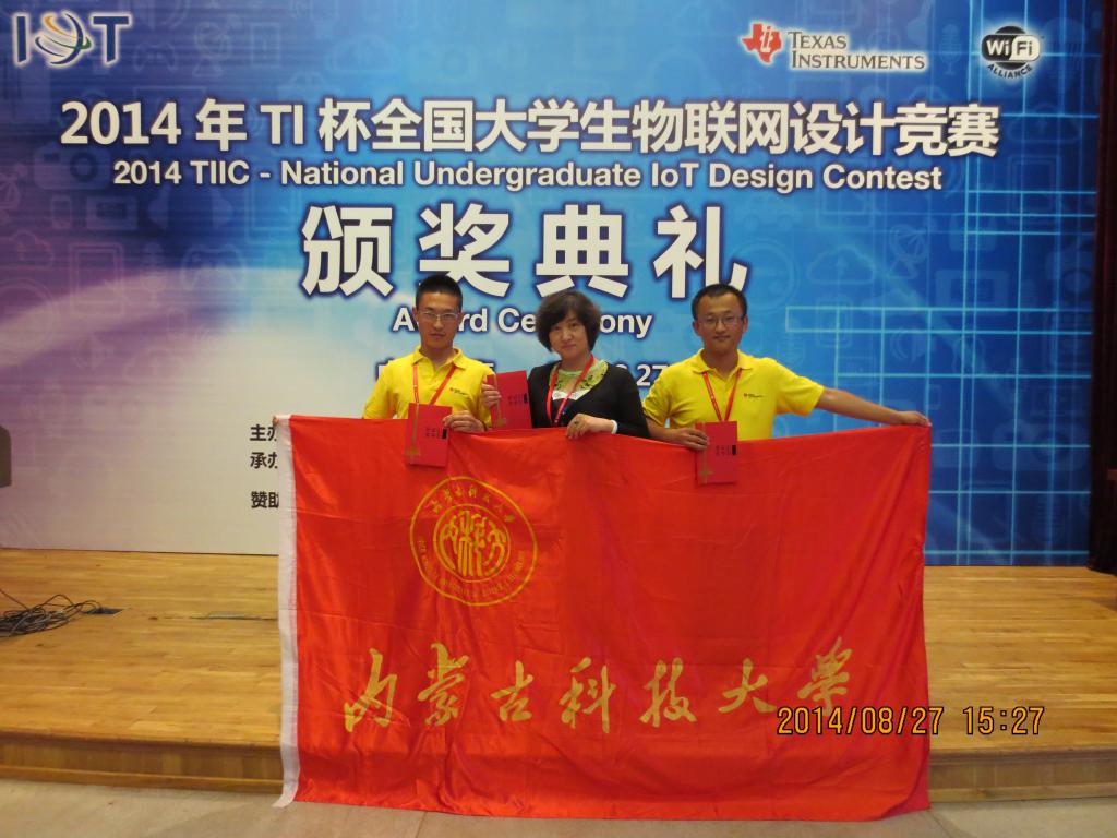首届TI杯全国大学生物联网设计竞赛于8月24日至27日在上海交通大学举行。我校信息工程学院代表队在勇夺华北赛区特等奖之后,再次夺得全国总决赛三等奖,永利集团3044官网欢迎您荣获优秀组织奖。本次大赛,共有来自浙江大学、上海交通大学、哈尔滨工业大学、电子科技大学、北京航天航空大学、北京理工大学等全国200多所高校的500多支队伍参加并展开激烈角逐。我校共有三支代表队入围华北赛区,由信息工程学院张春燕老师指导,贾东、陈天茹、田志强、周杰完成的“基于ZigBee的矿井安全监控系统”作品在勇夺华北赛区特等奖之后,再次夺得全国总决赛三等奖;同时,由高丽丽老师指导,王海银、夏海鹏等四位同学完成的的作品“智能门铃系统”和张春燕老师指导,韩佳旺等四位同学完成的作品“智能物流监控系统”分别夺得华北赛区一等奖和二等奖的好成绩。本届TI杯全国大学生物联网设计竞赛是由教育部高等学校计算机类专业教学指导委员会主办,上海交通大学承办,德州仪器TI公司、Wi-Fi联盟等多家单位支持并赞助本次竞赛。物联网作为国家确立的战略性新兴产业,其技术研究、产业开发、应用推广和人才培养受到前所未有的高度重视。此次竞赛为各个高校的学生提供了一个交流的平台,对物联网产业的发展、人才的培养起到积极推动作用。