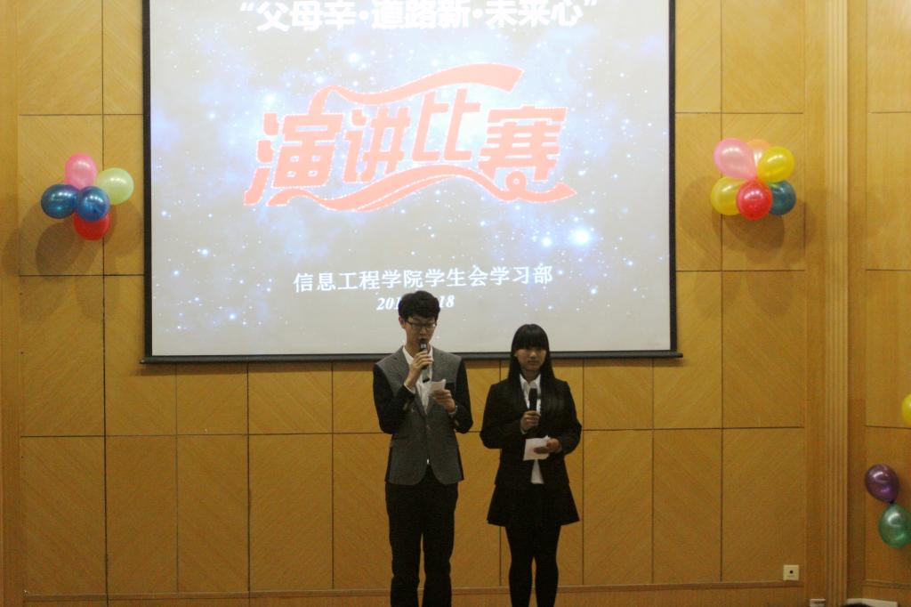 2014年10月19日晚19时,由我院学生会学习部主办的以“父母辛·道路新·未来新”为主题的演讲比赛决赛在主教学楼科技讲座厅拉开帷幕。