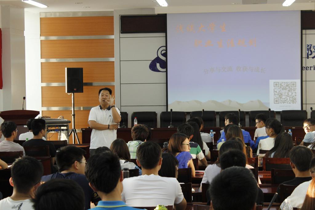 赵老师以浅谈大学生职业生涯规划为主题,结合了赵老师自身生活经历与企业发展需要,讲解大学生做职业规划的必要性以及对未来产生的影响。同时赵老师还给予学员赠言“功崇惟志,业广为勤”