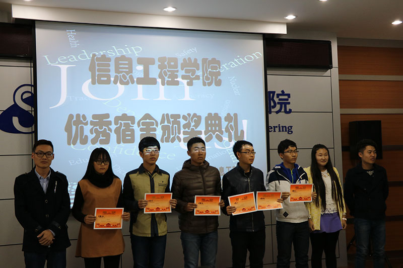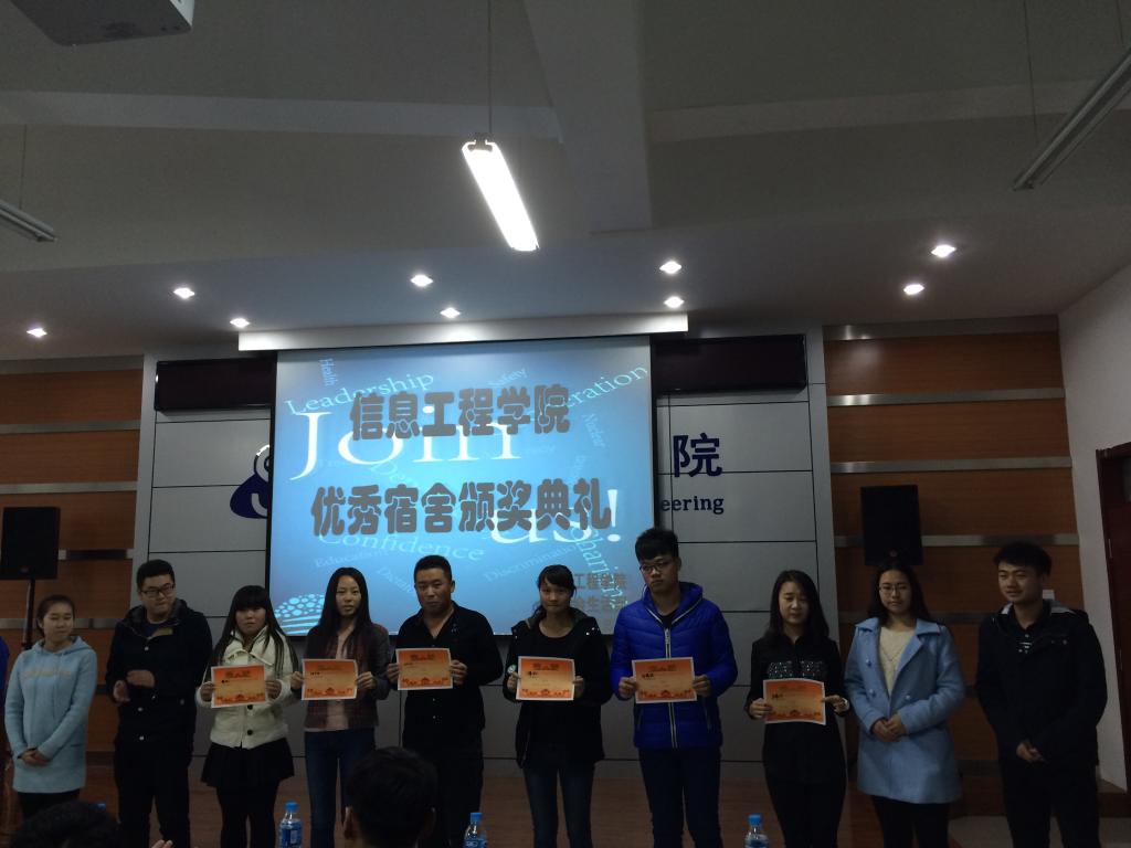 2015年11月8日上午,由我院学生会生活部举办的“信息工程学院优秀宿舍颁奖仪式”在逸夫楼F302成功举行。优秀宿舍代表及全体学生干部参加了本次活动。