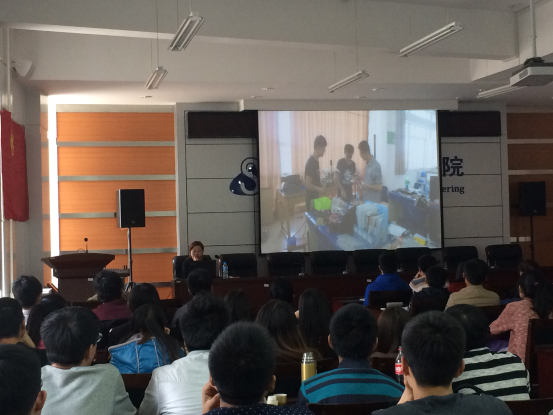 本次讲座的主题是“科技创新、大众创业”。讲座中,郭老师播放了我院学生组建的“雷霆战队”参加2015年大学生机器人大赛的相关视频,并介绍了我院科技创新社团的基本情况及每年的重点赛事;同时郭老师强调了在李克强总理提出的“大众创业,万众创新”的时代,我们需要大学生敢于拼搏、勇于创新,在科技创新、创业的舞台上充分锻炼自身的实践动手能力,尽情发挥自己的创新创意想法,用青春与智慧去迎接挑战,创造更好的成绩!