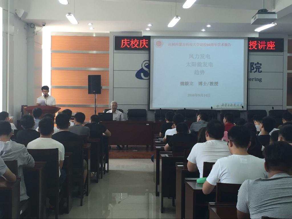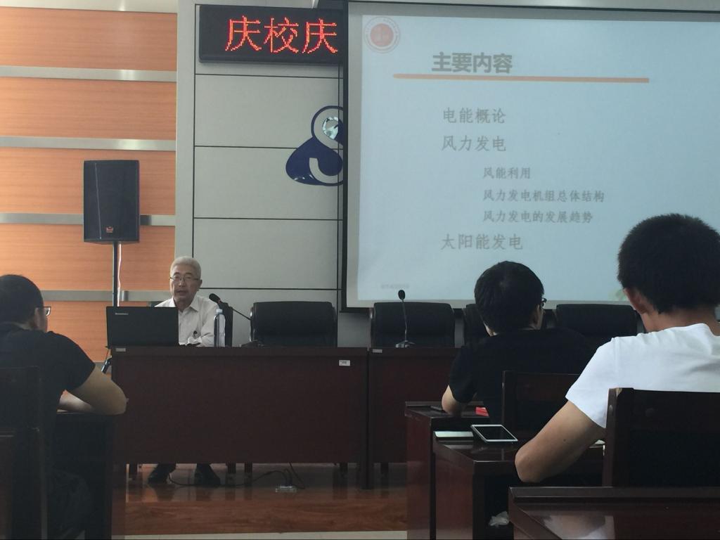 为庆祝我校建校60周年,9月14日下午15:00,我院邀请魏毅立讲授为学院电气专业老师和同学们进行讲座,讲座内容为“风力发电和太阳能发电”。讲座持续两个小时,魏教授的精彩讲座不断引起同学们的掌声。