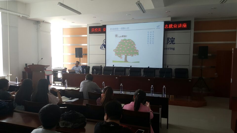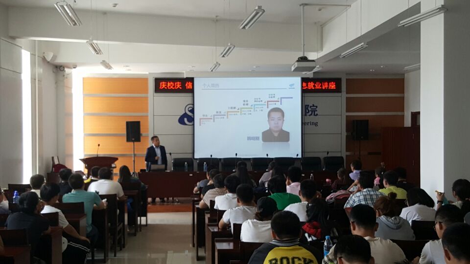 庆祝我校建校60周年,9月21日下午15:00我院邀请韩明刚校友来校为同学们做励志就业讲座。同学们从讲座中受益匪浅,并邀请韩总来校招聘。
