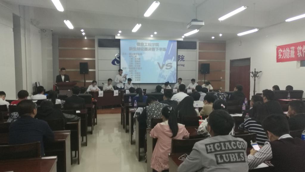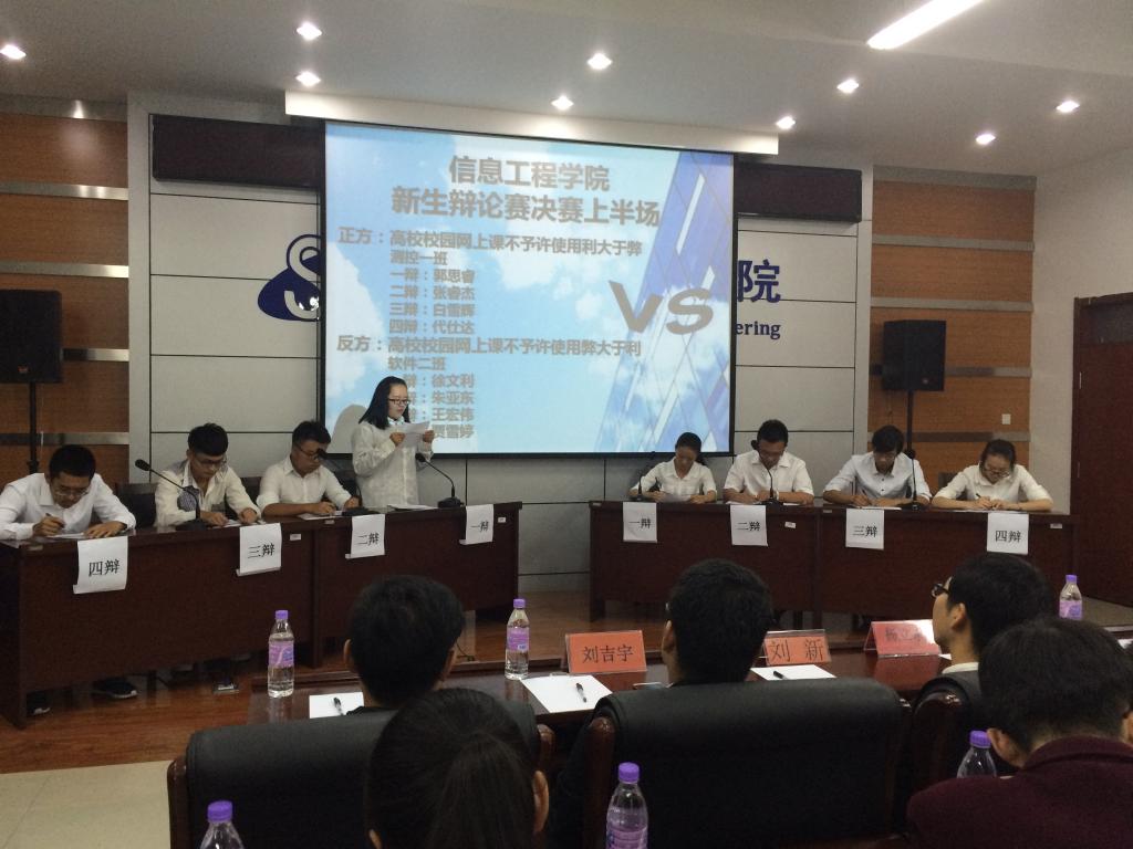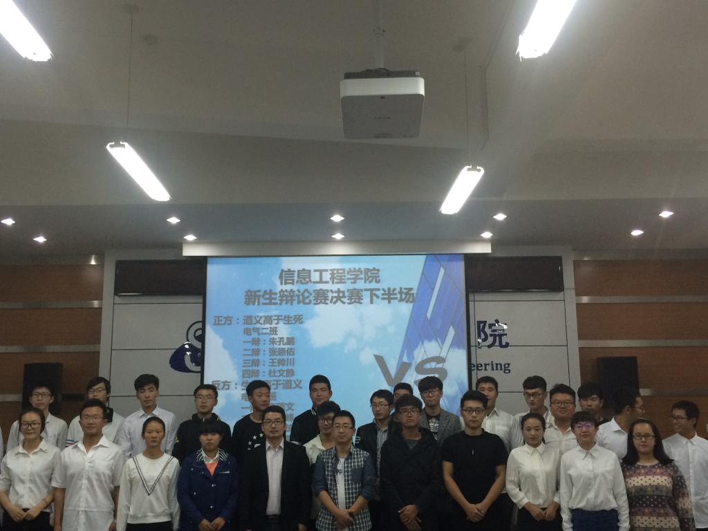 2016年10月24日晚7时,由我院政治理论部与学习与心理部联合举办的16级新生辩论赛决赛在逸夫楼F302打响。我院副院长杨立东老师、通信电信学生党支部书记刘吉宇老师、团总支书记刘新老师以及大三学生干部莅临比赛现场。