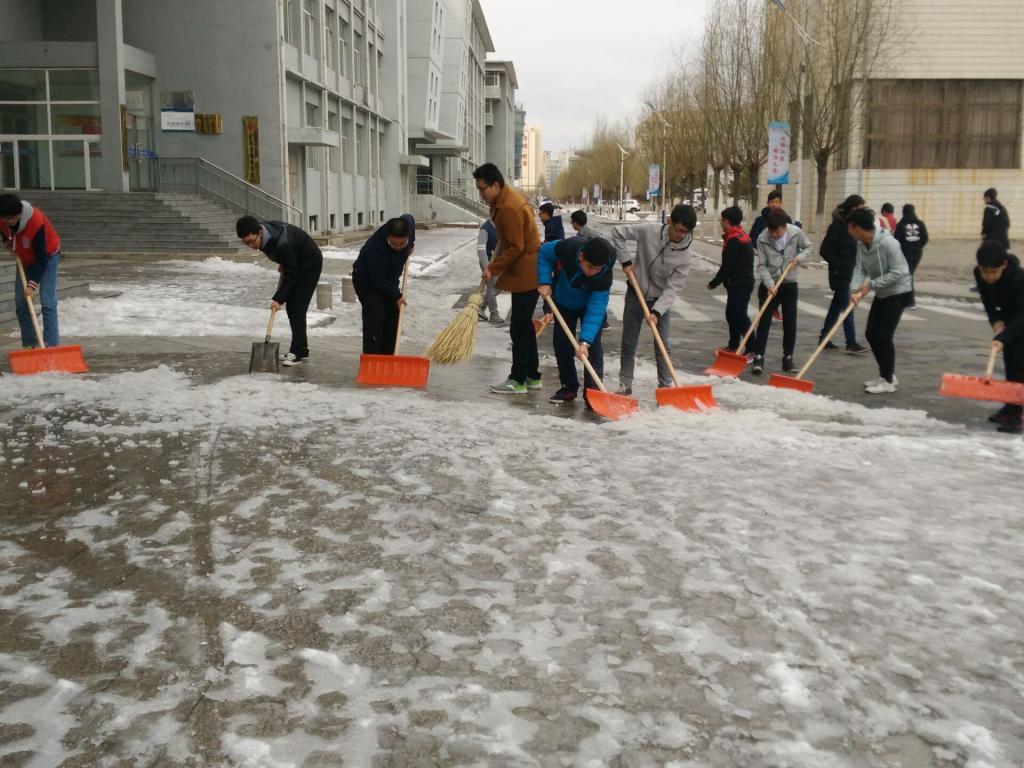 一场迎春大雪使得大地万物银装素裹,但也给师生带来了不便。为确保出行安全,3月24日至26日,我院组织了义务扫雪活动。