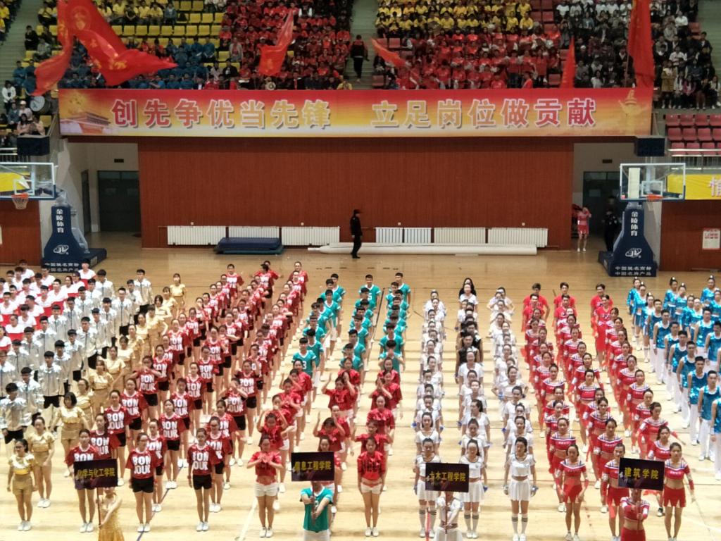 忙碌的学习没有抵挡队员的激情,激烈的竞争没有磨灭队员的信心。我院啦啦操队员们穿着青春气息的服装,迈着铿锵坚定的步伐自信上场。整齐划一的动作,变换迅速的“SIE”队形显现出的是信息精神,啦啦队队员们响亮的口号、卖力的呐喊,配合着飘荡人心的院旗,激发出每一个信息学子的自豪。最终,努力奋进的信息队获得个人展示第六名,团体第七名的好成绩。