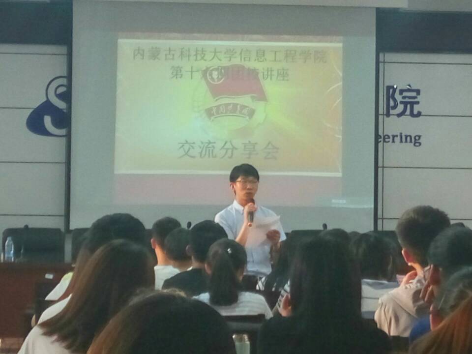 5月26日晚上19时,我院团务部组织的第十六期团校第六次团课学习于逸夫楼F302顺利举行。我院团总支书记刘新老师,大四优秀毕业生刘嫒玢、刘志龙、郑云奥以及第十六期团校学员参加了此次学习交流分享会。