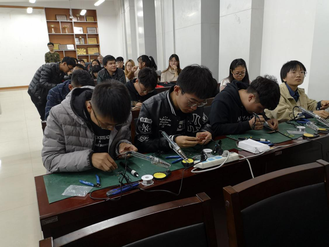 回首了过去,展望了未来,立足现在更加重要。社团成员一一上前为大家展示自己的科创成果,详细地讲述了其中的原理,充分展示了我院科创社团的实力,得到了老师和同学们极大的赞赏。随后在大一年级几位同学之间展开的焊板比赛更是激动人心,吸引同学都忍不住上前观看,激烈的比赛赢得了阵阵掌声。