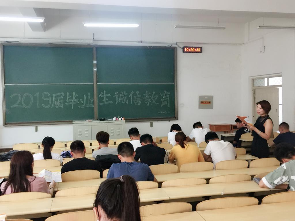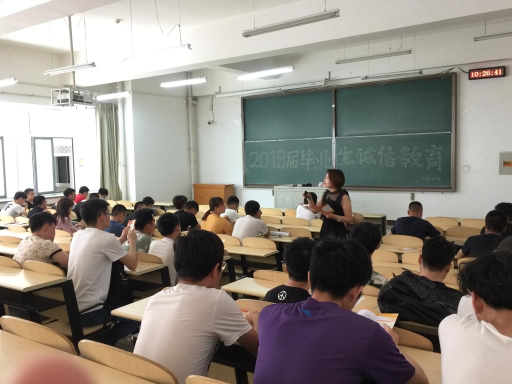 6月17日上午,我院2019届贷款毕业生诚信教育专题活动在逸夫楼G303举行。学院学生资助工作负责人郭聪如老师及2019届贷款毕业生参加了本次活动。