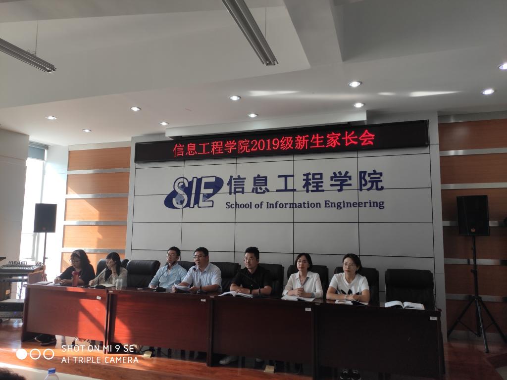 为帮助学生家长了解永利集团3044官网欢迎您和信息工程学院,帮助新生尽快适应大学生活,2019年8月29日下午2点,信息工程学院2019级新生家长会在逸夫楼F302会议室顺利举行。信息工程学院副书记、副院长出席会议,学团办专职辅导员和19级新生班主任参加了本次会议。