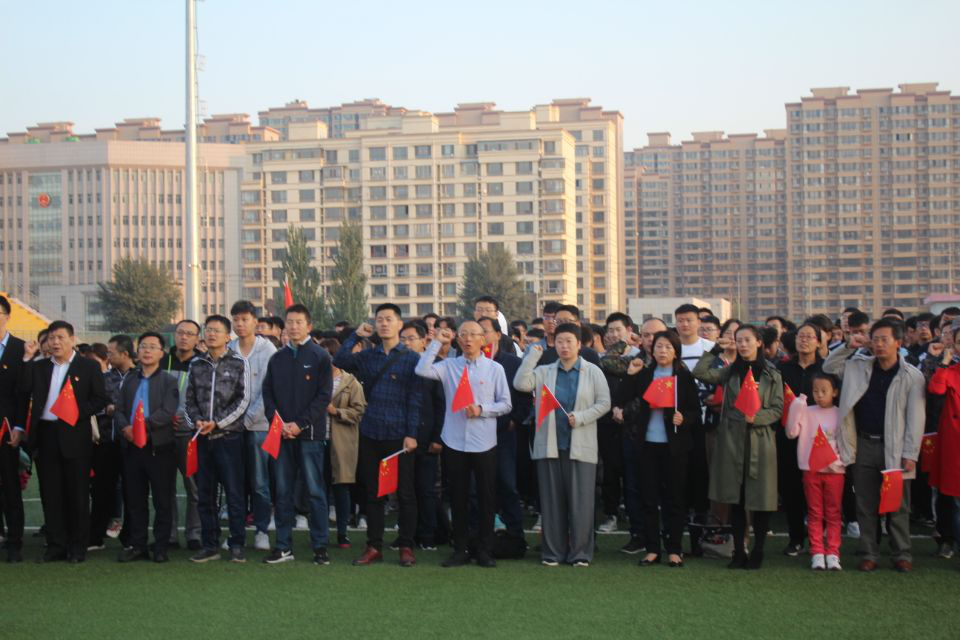 2019年9月30日早晨七点,我院庆祝新中国成立70周年升国旗仪式在田径场隆重举行。信息工程学院的老师和各个党支部的党员以及预备党员在操场上有序的排成方阵,并手持国旗参加本次升旗仪式