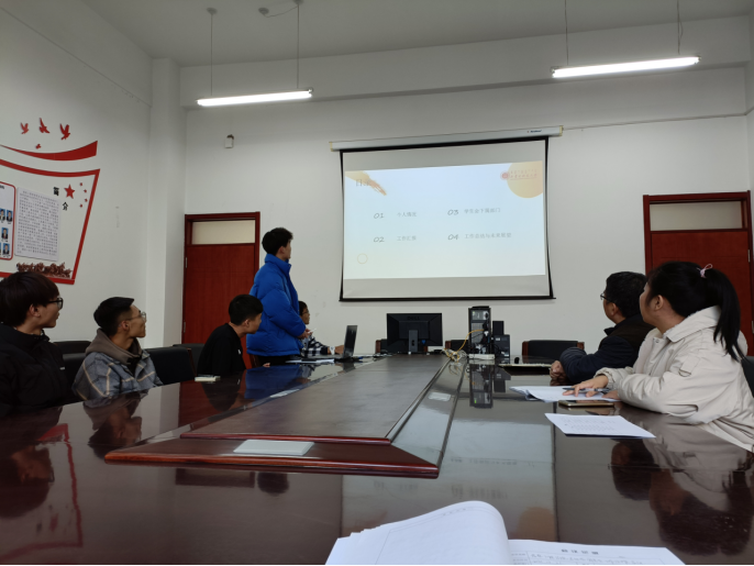 会上,学院团总支副书记连祎来、学生会执行主席李赫、副主席李永斌代表学生会各部门向学院党委作分管部门工作汇报。将本学期的学生部门开展的各项工作以及未来的计划做了汇报。