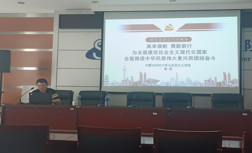 会上,杨哲副教授以“深刻把握过去五年的工作和新时代十年的伟大变革”“深刻把握党的二十大报告中的理论创新”“深刻把握党的二十大报告对未来工作的重大部署“和”深刻把握'两个全面'的关键”四个方面进一步深入解读了党的二十大报告精神。