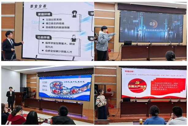 本次比赛由学院副书记兼副院长陈伟及学工办部分老师担任评委。比赛分为成长赛道和就业赛道,分别针对不同年级的学生,考察其职业发展规划的科学性以及求职实战能力。在成长赛道中,选手们从自我认知、职业环境分析、职业目标确定、评估与调整等方面,全面展示了自己的职业规划。而在就业赛道中,选手们则从个人求职意向和职业准备情况两方面进行主题陈述,展示个人的综合素质、岗位能力和发展潜力,此次大赛得到了全院师生的广泛关注和积极参与。