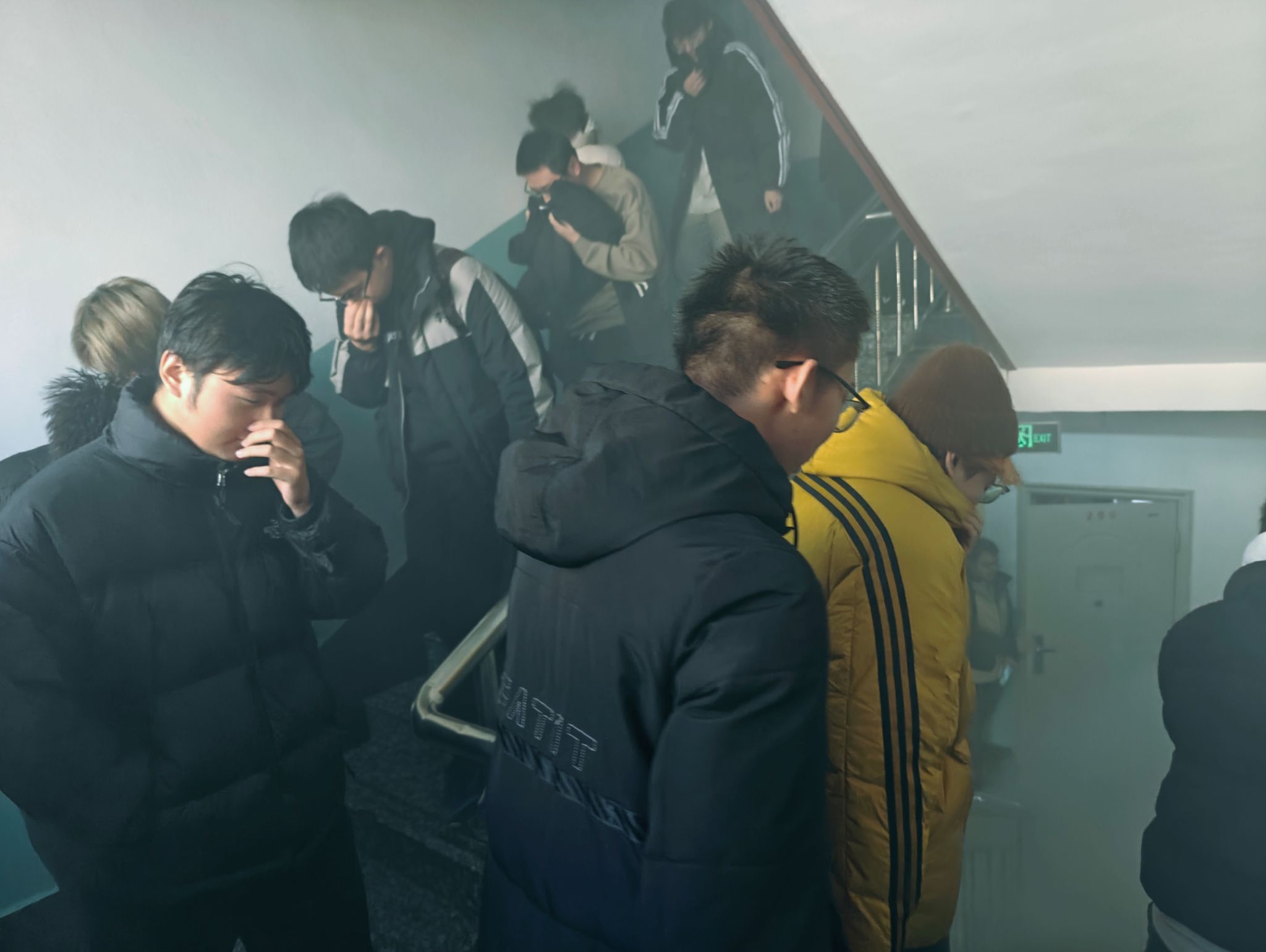 2024年11月28日下午3:00,随着消防警报响起,演练正式开始。出席演练活动的院领导陈伟书记带领辅导员王来老师和各楼层层长迅速到达指定点位,同学们手捂口鼻、低头弯腰,奔向宿舍门口,按照预定疏散路线有序撤离出宿舍楼,整个过程用时五分钟。在疏散过程中,大家安静、快速、有序撤离,没有出现拥挤、推搡、踩踏等意外情况。