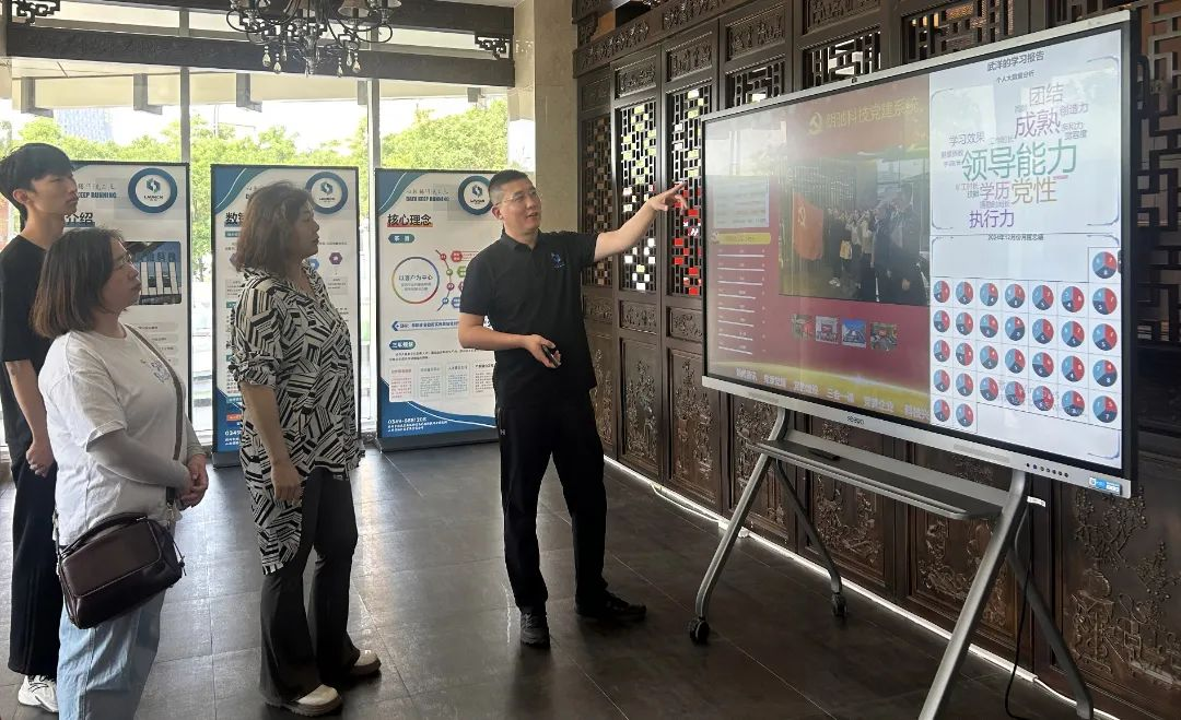 走访期间,朗驰科技总经理武洋向学院领导及随行师生介绍了公司的发展历程、核心业务与未来规划,同时展示了母公司东方国信在大数据、工业互联网、云计算、人工智能、5G领域的核心技术成果及其在通信、金融、工业、农业、公共安全等行业应用案例。此外,双方还就校企党建工作进行了深入交流,武总向我院师生介绍了集在线学习、组织管理、数据分析于一体的智慧党建系统,为探索“党建+科技”融合创新提供了实践样本。