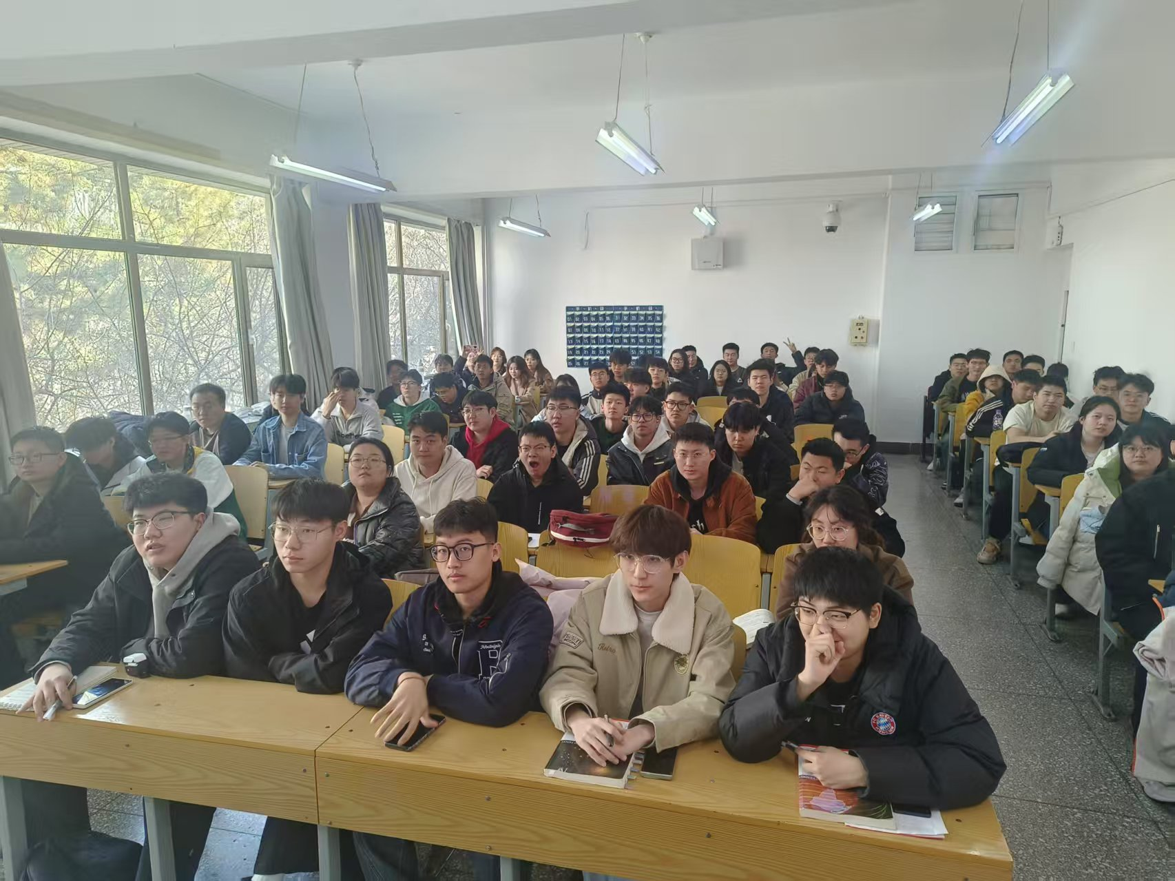 本次公开课以“科技+教育”的创新模式为同学们带来了一场别开生面的体验。不仅有专家深入浅出地讲授了教室、宿舍、实训室等易发生火灾场所的火灾风险防范、常用灭火设施使用方法等消防安全知识,而且还有人形机器人、机器狗等智能设备进行生动有趣的互动讲解,并且通过3D模型烟气实验向同学们直观表示正确的火灾逃生方法。