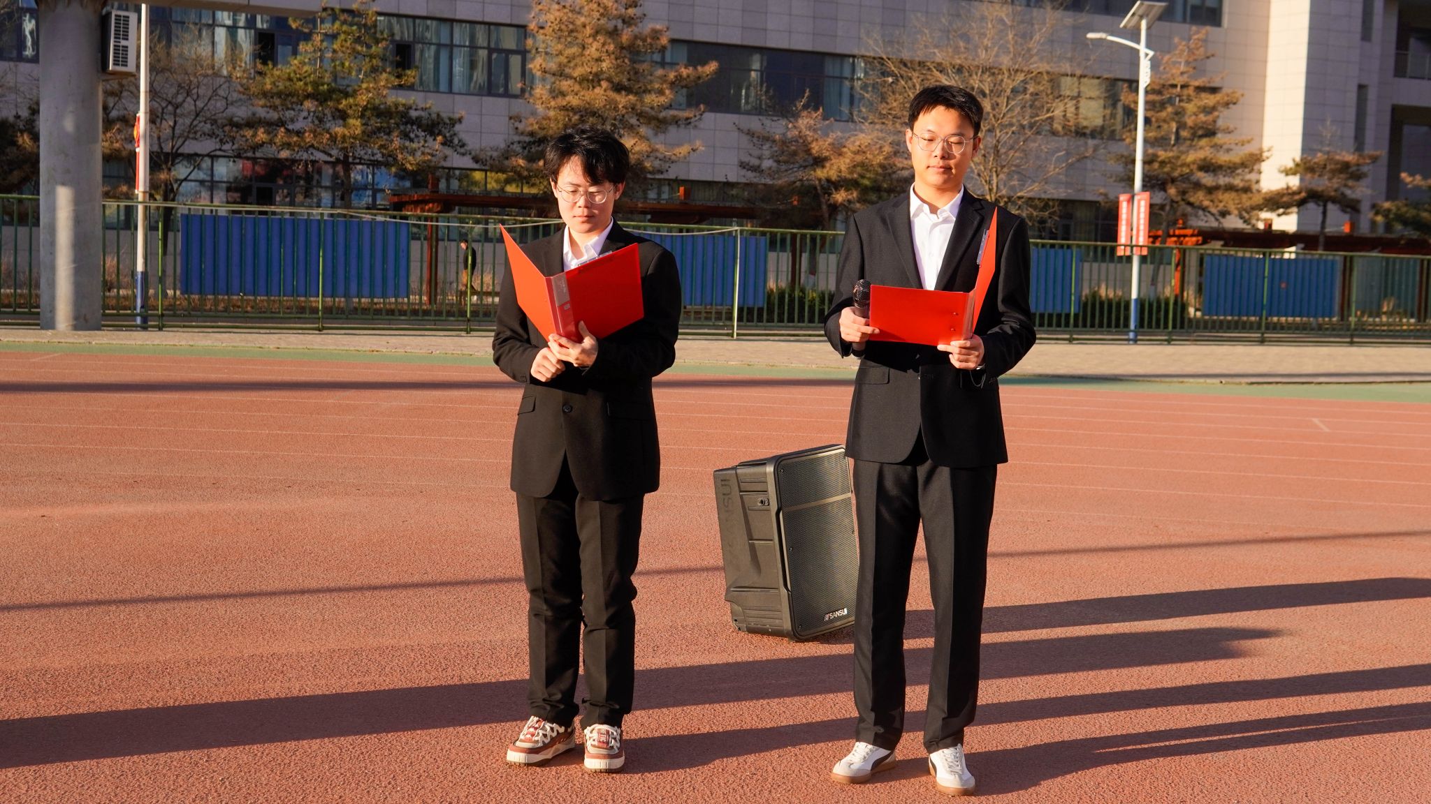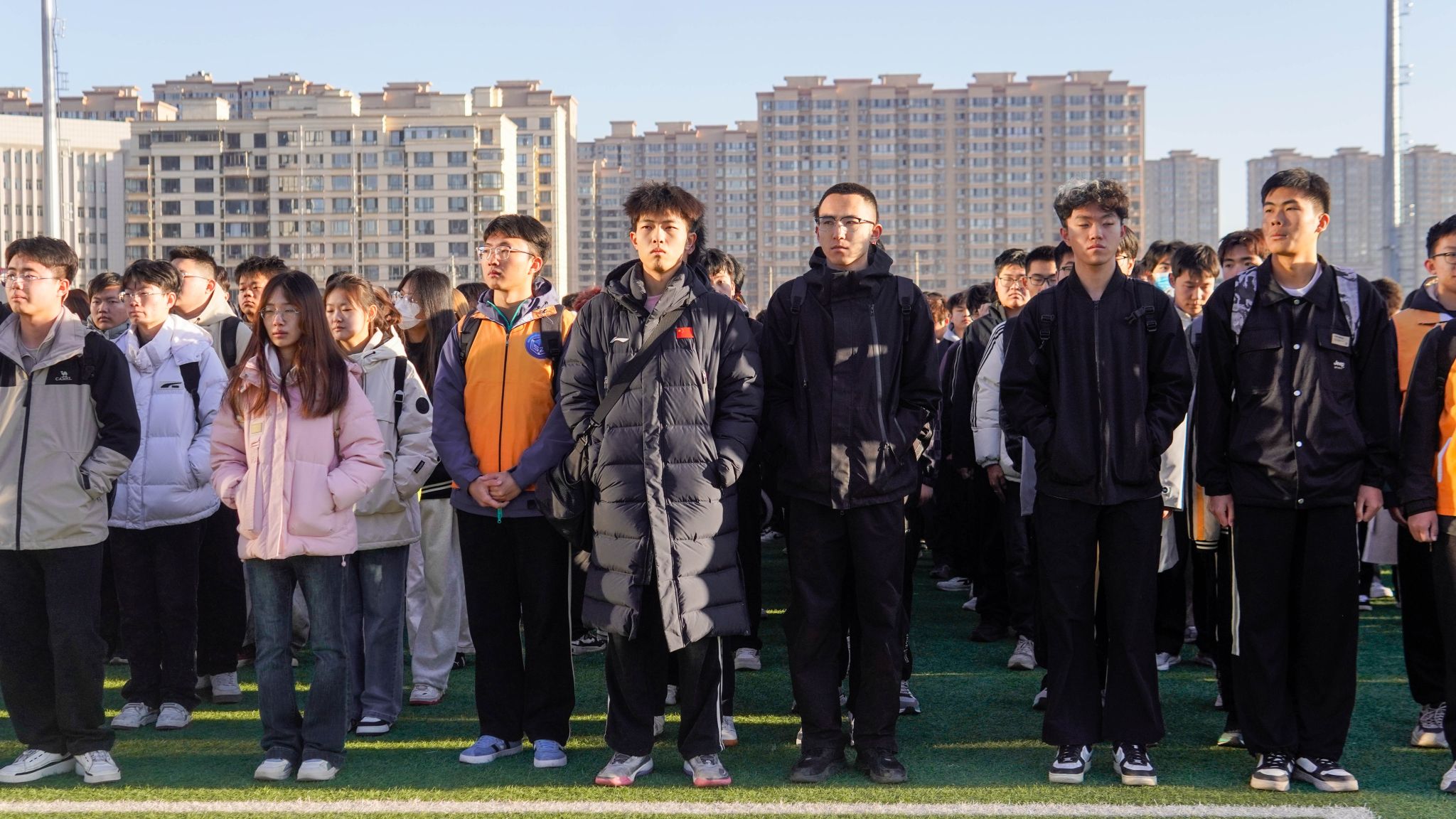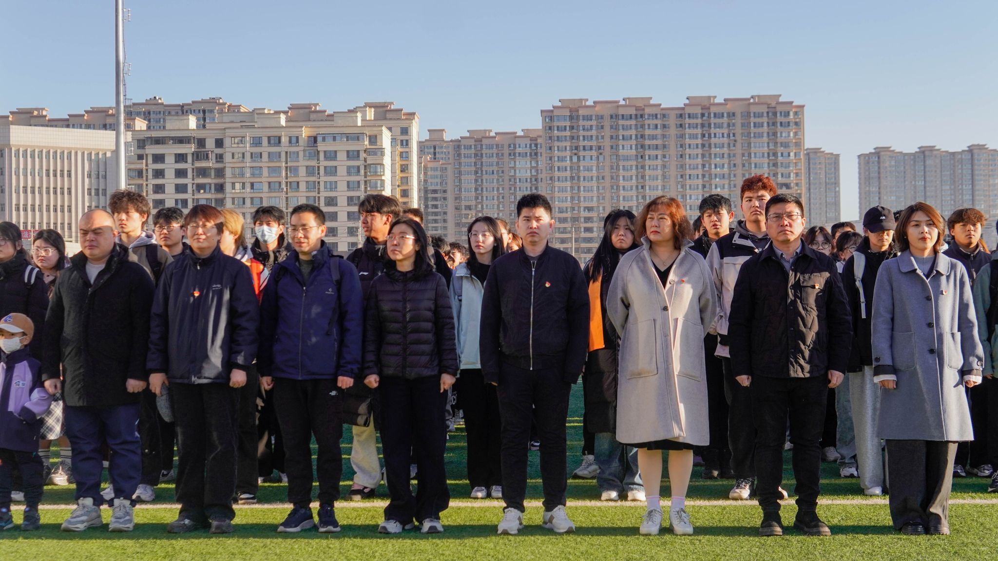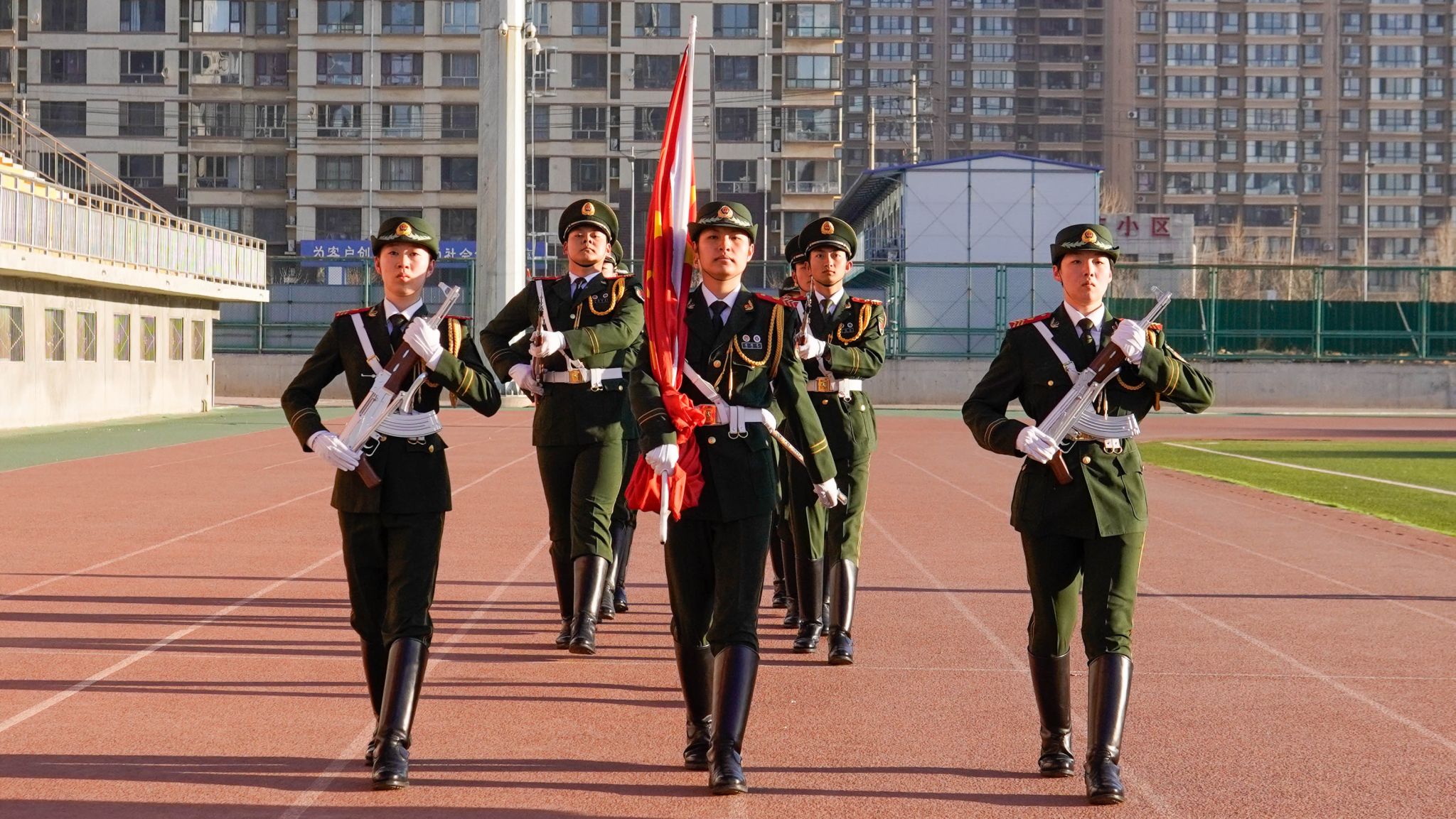 晨光熹微,启幕新章。国旗护卫队手持国旗,目光坚毅,踏着铿锵步伐护送国旗入场。升旗手振臂挥旗,伴随着《义勇军进行曲》的激昂旋律,鲜艳的五星红旗在晨光中冉冉升起,全体同学肃立行注目礼,表达着对祖国的热爱与敬意。