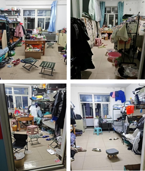 反向督促-明确整改机制:检查中存在物品乱堆、卫生脏差等问题的宿舍,领导及老师现场指出问题所在,批评教育引导并明确对其成员的整改要求与时限。整改措施应做到以下几点:严格遵守宿舍值日安排,规范整齐摆放物品,保持良好卫生习惯,每周至少进行一次宿舍深度清洁,对卫生间、阳台等易滋生细菌区域重点打扫,定期开窗通风,保持空气清新,共同营造干净整洁的居住环境。