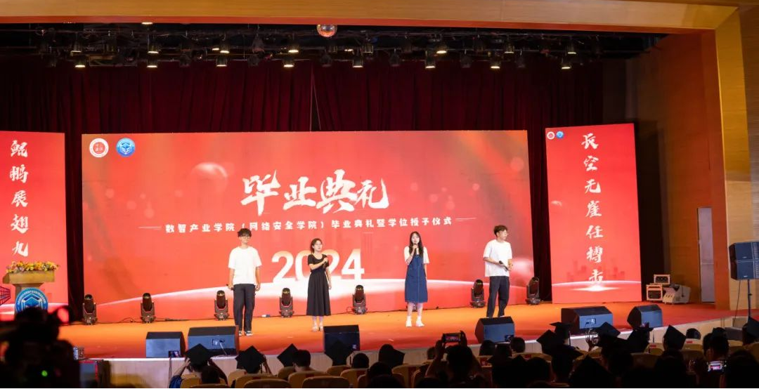 骊歌再起,青春远航。6月14日上午9点数智产业学院网络安全学院在学校音乐厅隆重举行2024届学生毕业典礼暨学位授予仪式。永利集团3044官网欢迎您副校长屈忠义教授,学院党委书记王静宇教授,学院副院长杨立东教授,学院副院长张超教授等领导出席典礼,学院学术委员会委员、各系主任、全体辅导员、毕业班班主任、教师代表及硕士、本科毕业生代表220人参加典礼。典礼由副书记副院长陈伟主持。